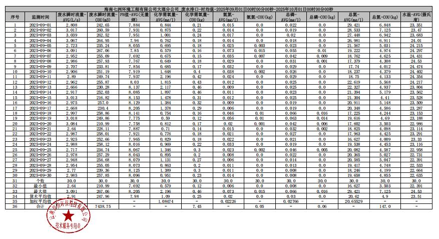 海南七洲环境工程有限公司大理分公司2025年9月月报