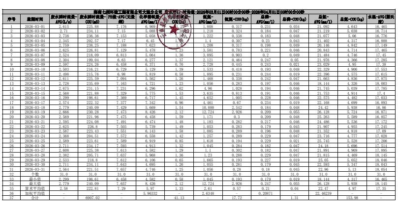 海南七洲环境工程有限公司大理分公司2026年3月月报
